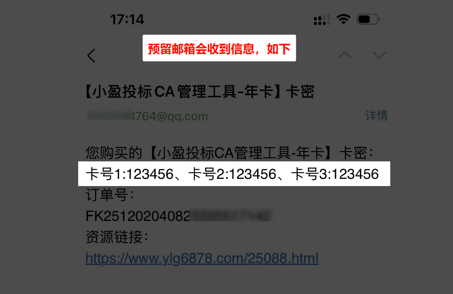 1、购买时要输入正确的邮箱号,用与接收卡号。